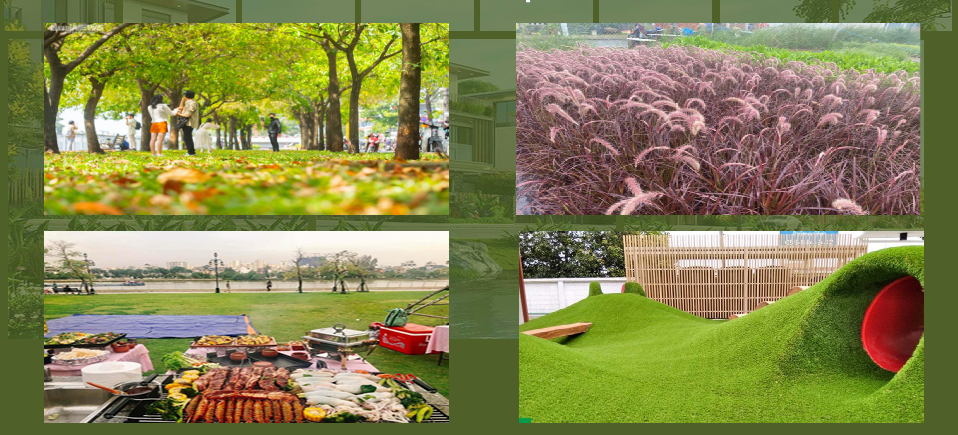 - Đất cây xanh và hồ điều hoà chiếm 15ha