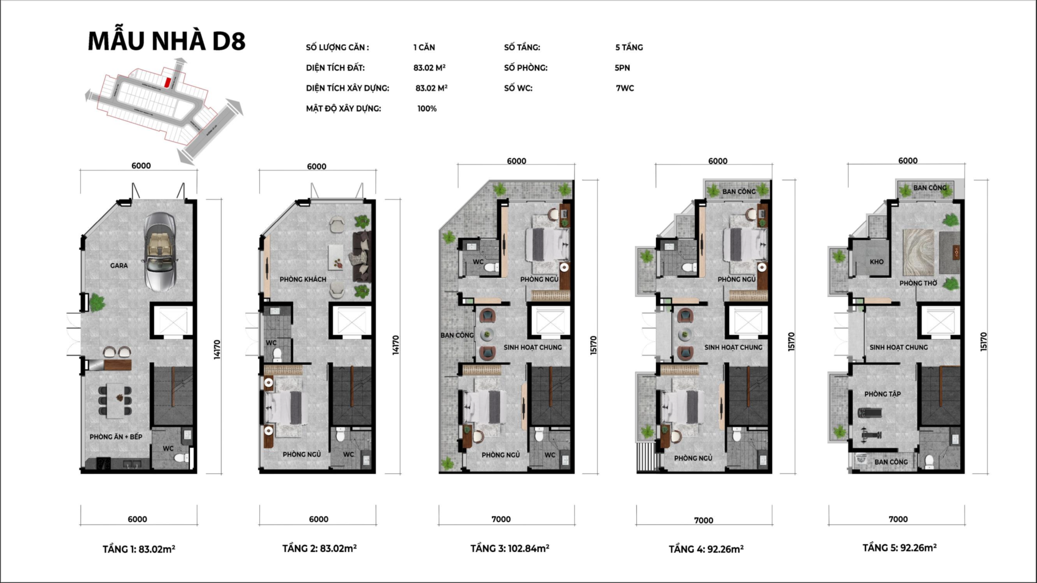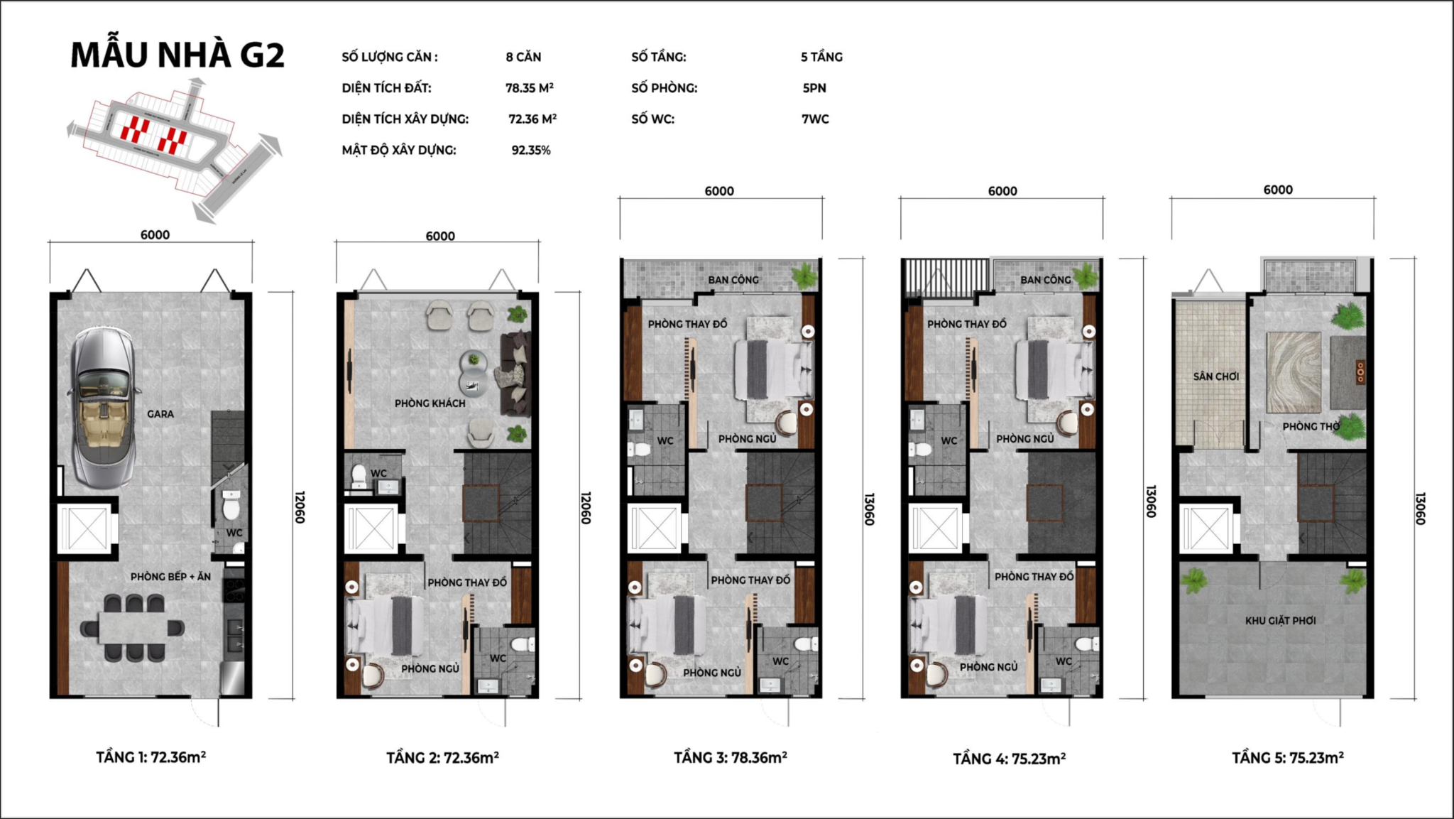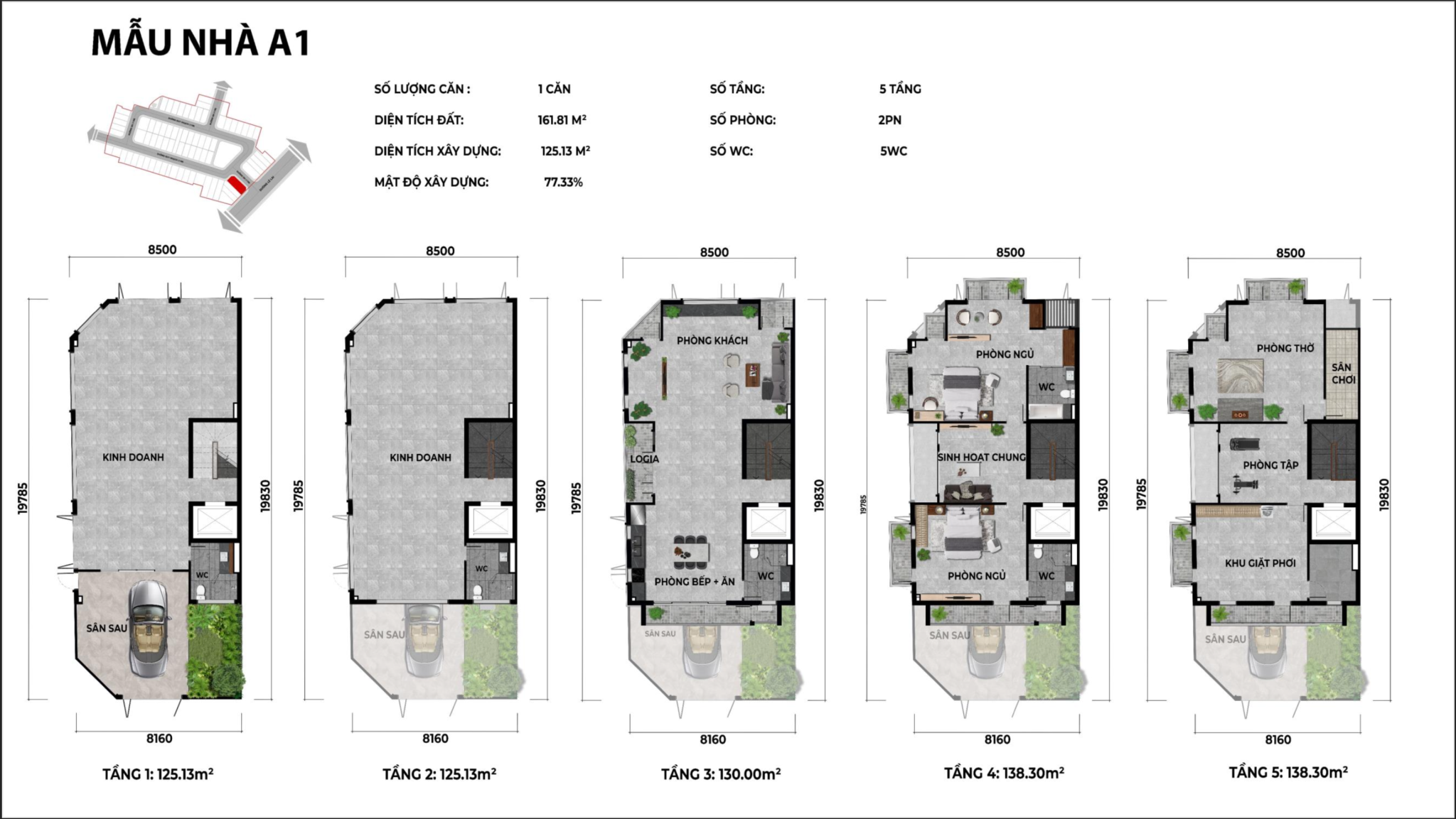 – Loại Hình Sản Phẩm: 74 căn liền kề, shophouse xây 5 tầng.