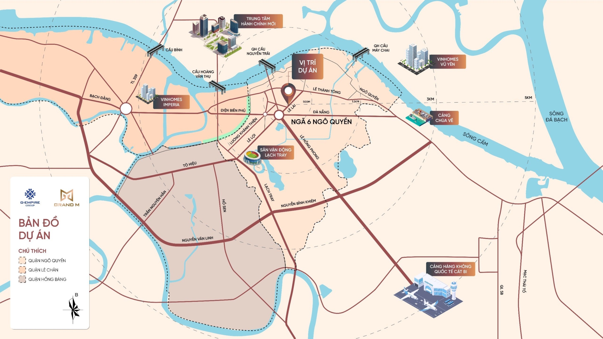 – Cách sân bay quốc tế Cát Bi 5.5km