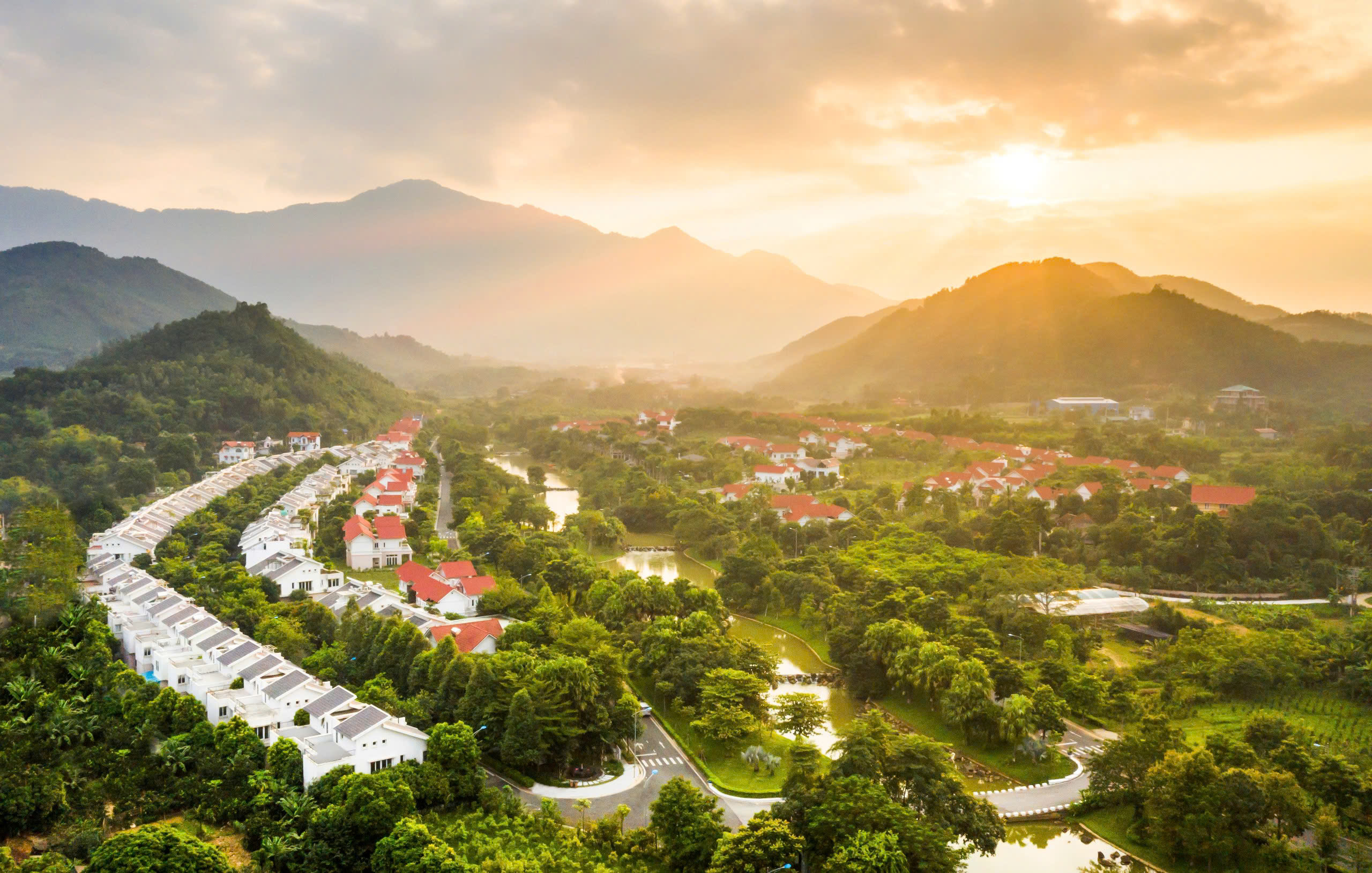 Từ dòng suối thiên nhiên trong lành chảy dọc thung lũng cùng cây cối và đồi núi xanh mát bao quanh, kiến trúc của Xanh Villas dựa trên sự tôn trọng và hòa hợp với thiên nhiên. Các villas được đặt bên dòng suối chảy róc rách quanh năm, ẩn hiện dưới những tầng cây, tán lá